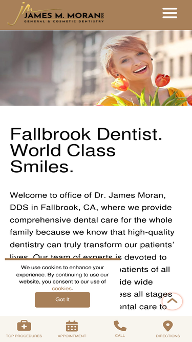 99%Achieve a brighter smile with Professional Teeth Whitening treatment at James M. Moran, DDS in Fallbrook, CA. To schedule an appointment, Call (760) 284-8477