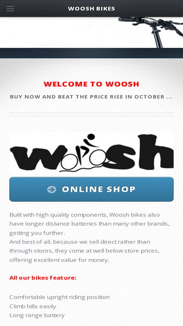 76%The Woosh Rambletta is the most recent 20kg folding bike from Woosh, with a large 36V * 10.4AH semi-hidden battery, very easy to stowaway, perfect for camping / caravanning.