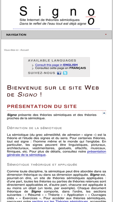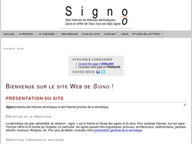 80%consacré aux théories sémiotiques appliquées, signo présente différentes théories sémiotiques ainsi que les principaux théoriciens de cette discipline.