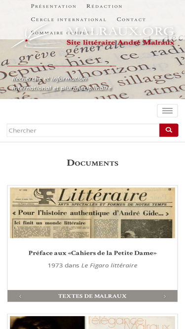 57%Site de recherche et d’information dédié à Malraux: Littérature, arts, histoire, philosophie, sciences des religions, ethnologie