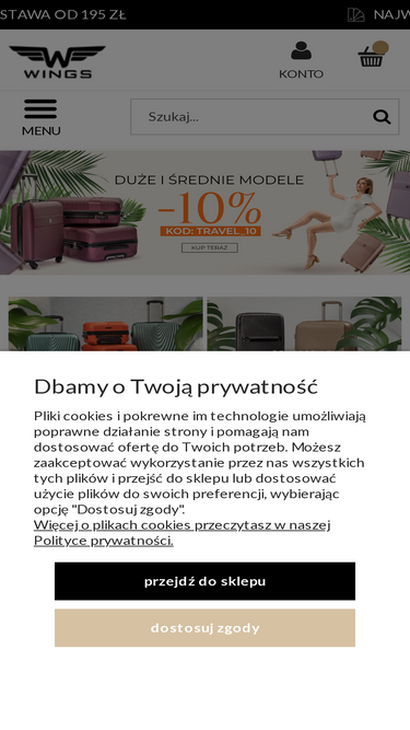 100%Zestaw HARRIER Zestaw walizek HARRIER marki WINGS to odpowiedź na potrzeby nowoczesnych podróżników, którzy poszukują stylowego, funkcjonalnego i trwałego bagażu – niezależnie od długości i charakteru podróży. Trzy idealnie dopasowane rozmiary – kabinowy (S), średni (M) i duży (L) – pozwalają na pełną elastyczność w planowaniu zarówno krótkich wyjazdów, jak i długich wypraw. To komplet, który zachwyca nie tylko wyglądem, ale i przemyślaną konstrukcją. Każda walizka wykonana została z wytrzymałego tworzywa ABS+, które gwarantuje odporność na zarysowania, uderzenia i nacisk, przy jednoczesnym zachowaniu lekkości. Subtelne pionowe żłobienia nadają walizkom nowoczesnego, dynamicznego charakteru, a czarne wykończenia detali – od ram po uchwyty i zamki – wprowadzają elegancki kontrast i wizualną spójność całej serii. Wnętrze każdej walizki zaprojektowano z myślą o wygodnym i logicznym pakowaniu. Dwie niezależne komory, elastyczne pasy mocujące, zapinana przegroda oraz kieszeń z siatki umożliwiają bezproblemową organizację garderoby, akcesoriów i dokumentów – niezależnie od rozmiaru. Całość dopełnia podszewka sygnowana logo WINGS. Walizki WINGS HARRIER wyposażone zostały w teleskopowe rączki o regulowanej długości, które pozwalają dopasować wysokość prowadzenia walizki do użytkownika. Lekki, aluminiowy stelaż oraz cztery podwójne kółka obracające się o 360° gwarantują pełną kontrolę, zwrotność i wygodę w każdej przestrzeni – od lotniskowych terminali po brukowane ulice europejskich miast. Dodatkowym atutem każdego modelu jest praktyczny boczny haczyk, umożliwiający zawieszenie dodatkowego bagażu podręcznego – plecaka, torby czy małej torebki. To niezwykle użyteczne rozwiązanie sprawia, że podróżowanie staje się jeszcze wygodniejsze, eliminując konieczność noszenia dodatkowych akcesoriów w rękach. Zestaw walizek HARRIER to połączenie maksymalnej funkcjonalności z dopracowaną estetyką. Niezależnie od tego, czy wybierasz się na krótki city break, delegację, rodzinny wyj