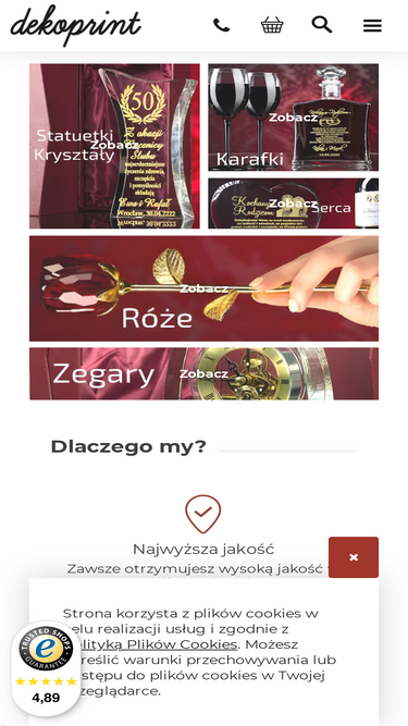 82%Ciekawy? Z całą pewnością! Oryginalny? Bez dwóch zdań! Taki jest bez wątpienia kryształ grawerowany, który ma do zaoferowania nasz sklep Dekoprint.pl Jedyny w swoim rodzaju prezent, na którym może znaleźć się dowolny tekst - życzenia, podziękowania, słowa miłości, wdzięczności, wsparcia. Dla każdego i od każdego, kto ceni oryginalność w pełnym tego słowa znaczeniu. Idealny na podziękowania dla rodziców. W podanej cenie otrzymujesz: - piękną kryształową statuetkę - ozdobne bordowe etui z satyną zamykane na magnes - projekt graweru na dowolną okazję z Twoimi indywidualnymi wymaganiami - dokładne grawerowanie laserem - ręczne złocenie lub srebrzenie graweru - można również zostawić grawer bez wypełnienia czyli biały - odpowiednie zabezpieczenie paczki aby towar doszedł do Ciebie w całości Co zrobić po zakupie: Po zakupie prześlij do nas mailowo specyfikację zamówienia. Oto przykładowe dobrze wypełnione zamówienie: Telefon: 123456789 Model: 0128 Kolor graweru: złoty / srebrny / brak wypełnienia Dane do wykonania: napisz wszystko to, co uważasz że jest potrzebne do wykonania Twojego zamówienia - podpis, datę, numer ewentualnej rocznicy i wszystko to, co uznasz że warto nam przekazać. Jeżeli czegoś nie podasz - nie ma problemu - sami Cię o to dopytamy po zakupie. Możesz również przesłać swoje wytyczne (jeżeli na przykład chcesz prezentu na inne wydarzenie czy dla innej osoby) i dostosujemy projekt do Twojej okazji oraz wymagań.