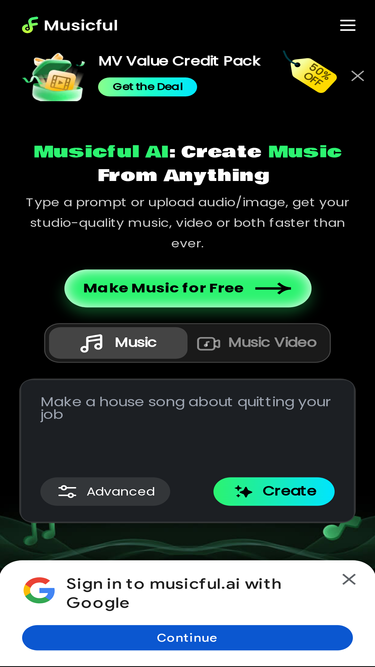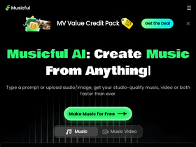 98%Generate stunning songs in one click with Musicful.ai — effortlessly turn text, ideas, prompts, or even your voice and humming into music.