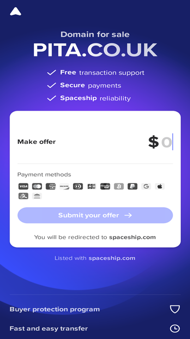 85%Own PITA.CO.UK today. Secure checkout and guided transfer support. No hidden fees.