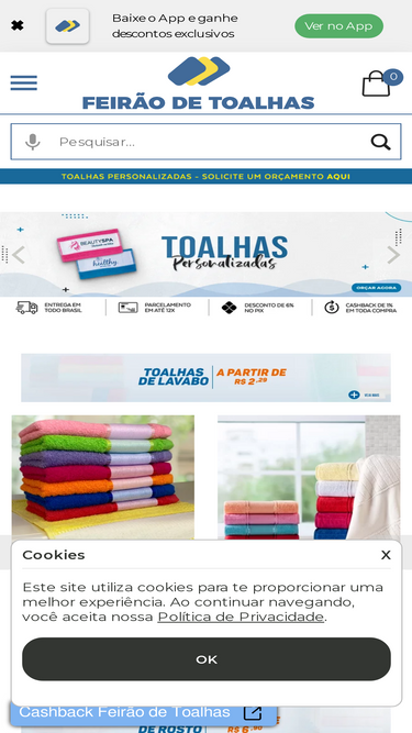 95%Aqui no Feirão de Toalhas você encontra vários produtos do segmento de Cama, Mesa, Banho e Acessórios. Entregamos para todo Brasil. Acesse para saber mais!