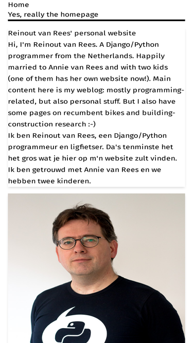 100%personal website of reinout van rees. django/python software developer. ligfietsen.