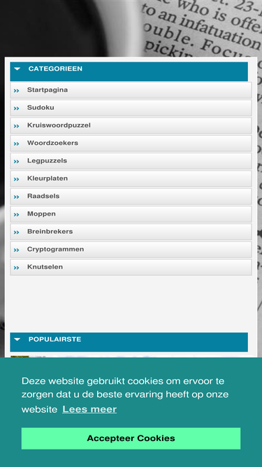 95%welkom op de homepage van puzzelcorner! leuke online puzzels en spellen: kruiswoorden, doorlopers, cryptogrammen, woordzoekers, quizzen, prijspuzzels & sudoku's