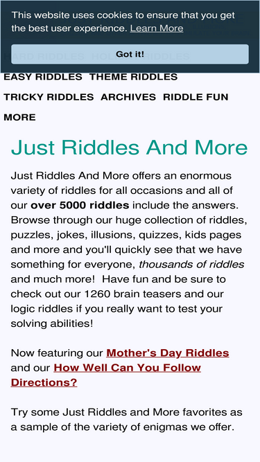 81%Just Riddles And More offers an enormous variety of riddles for all occasions; all of our riddle pages include the riddles and answers to over 5000 riddles