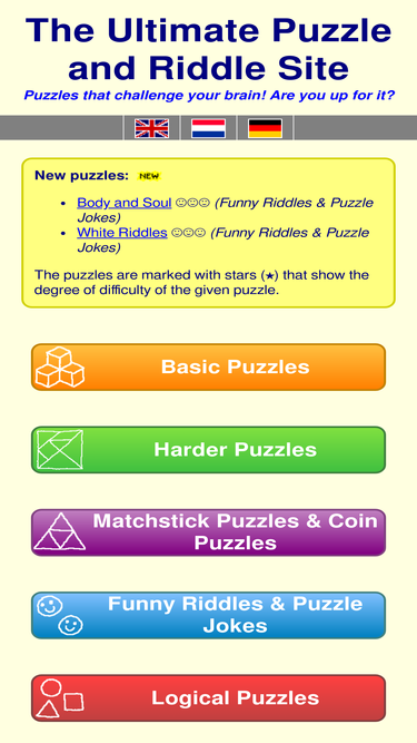 87%the ultimate puzzle and riddle site: lots of challenging puzzles and riddles in various categories and exciting interactive quizzes and tests! the ultimate puzzle and riddle site!
