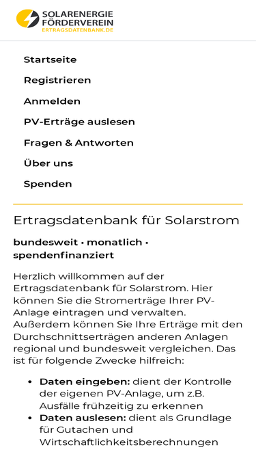 100%Bundesweite Aufnahme der monatlichen Ertragsdaten von PV-Anlagen
