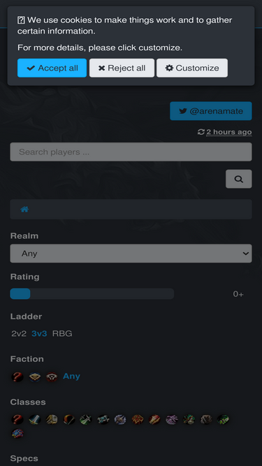 According to Similarweb data of monthly visits, pvpratings.com’s top competitor in March 2026 is wowwiki.com. pvpratings.com 2nd most similar site is arenamate.net, and closing off the top 3 is arenajunkies.com.