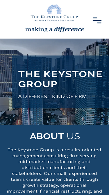 94%The Keystone Group is a results-oriented management consulting firm. Our small, experienced teams work with mid-market manufacturing and distribution clients to develop and execute strategy, improve operations, restructure finances, and integrate acquisitions.