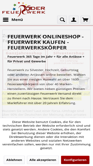 85%Premium Feuerwerk vom Fachmann im Versand Shop ganzjährig und zu Silvester kaufen. Große Auswahl an Feuerwerkskörper, Pyrotechnik und Silvesterartikel.
