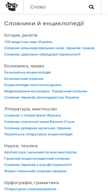 75%словник.ua містить тлумачний словник української мови із понад 130 000 тлумаченнями, 260 000 слів у орфографічному словнику, 2600 імен та по-батькові у сервісі звертань, сервіс офіційної транслітерації та новий правопис 2019.