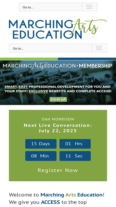 98%Welcome to Marching Arts Education! The content on this site includes over 1300 episodes of the Marching Roundtable Podcast and hundreds of hours of video interviews and conversations. We give you ACCESS to the top Marching Arts Professionals, with