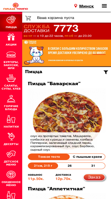96%смотрите меню пиццерии в минске - фото, цены, скидки. онлайн меню «пицца темпо» - удобный заказ, быстрая доставка