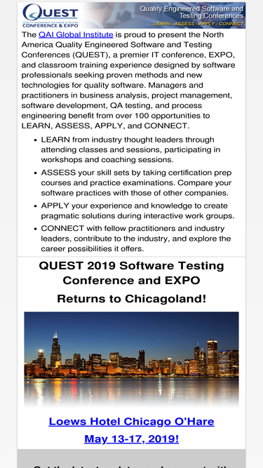99%software test professionals conference - qai introduces quest (quality engineered software and testing conference) in chicago from april 3-7, 2017.