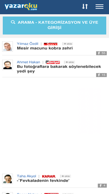 40+ gazeteden, bütün köşe yazarları ve tüm köşe yazıları her gün burada yayınlanıyor.