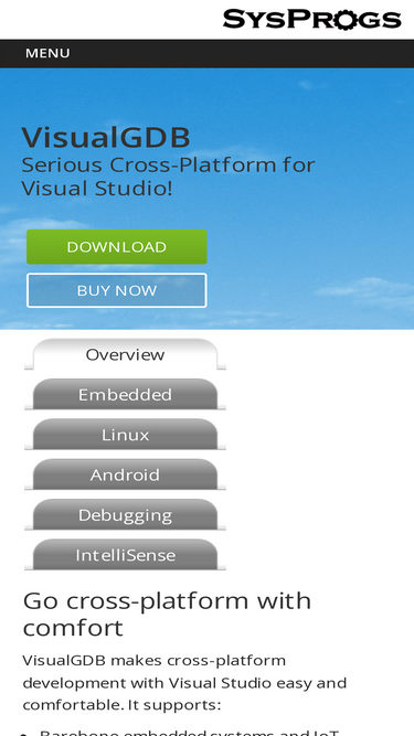88%visualgdb is visual studio extension that adds c/c++ support for embedded, linux, and android platforms. it supports building, debugging and provides a powerful intellisense engine.