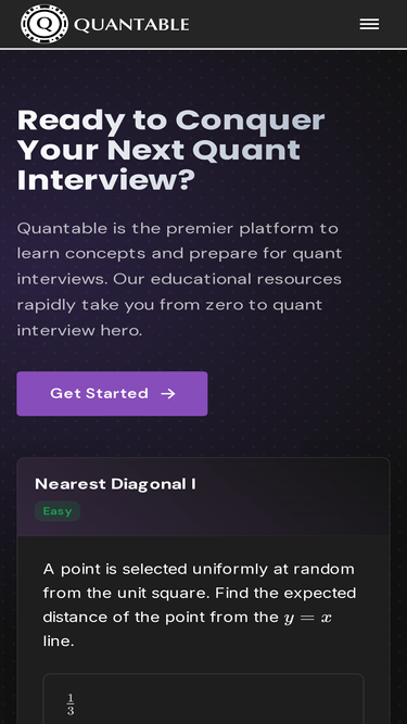 100%quant questions is the leading quant interview prep platform to prepare you for quant finance interviews and help you land a job at top firms like jane street and imc. train with over 1200+ interview questions today