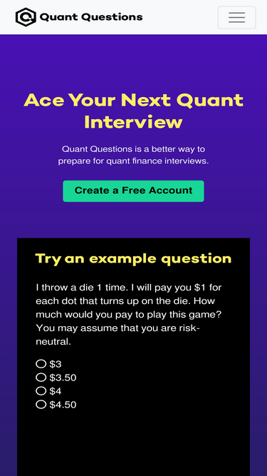 71%quant questions is a leading platform to prepare you for quantitative finance interviews. train with real quant interview questions to maximize your success. create a free account today and start practicing quant finance interview questions now.