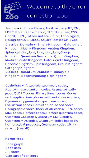 91%The Error Correction Zoo collects and organizes error-correcting codes.