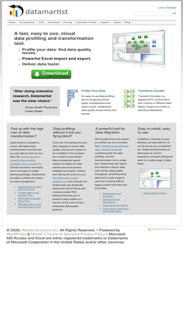 88%a fast, easy to use, visual data profiling and transformation tool. profile your data- find data quality issues. powerful excel import and export. deliver data faster.