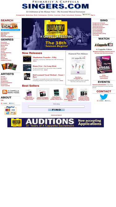 a cappella music - songbooks, cds, dvds, sheet music arrangements for singers and vocal harmony singing groups.
