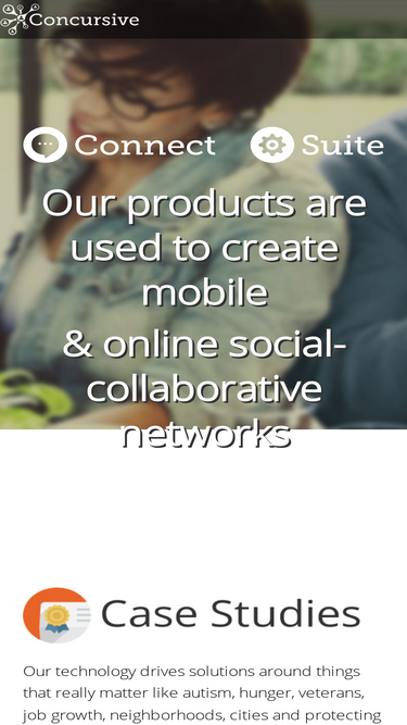 concursive corporation - social business software and crm - concursive corporation is a privately held media and software development company headquartered in norfolk virginia. we are the developer of several products, including concoursesuite, a dedicated crm solution, and concourseconnect, an integrated social mobile local web-based software platform that brings together corporate social networking, collaboration, online community, business directory, and crm capabilities. concursive products are used by large enterprises and thousands of small businesses alike and our thriving developer and user community has more than 18,000 registered community members.