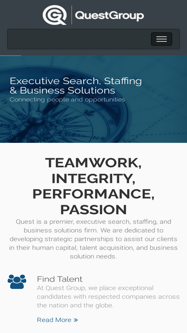 Quest Group is a premier, global executive search, staffing solutions, and consulting firm dedicated to developing strategic partnerships that maximize our clients’ human capital and talent acquisition needs.