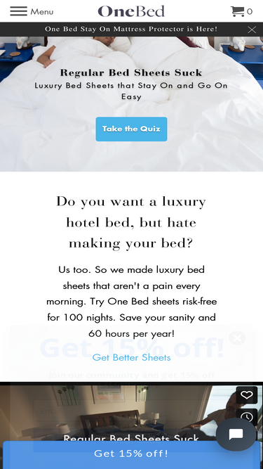 82%Luxury bed sheets for busy (aka lazy) people. One Bed sheets are the easiest sheets to tuck or leave untucked. You spend 1/3 of your life in bed. Don't compromise! Get the only sheets that combine luxury and ease of use at a fair price.