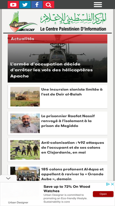 87%Le Centre Palestinien d’Information (CPI) est une organisation indépendante créée le 1er décembre 1997 en arabe, suivi d’autres langues dont en français en 2003.