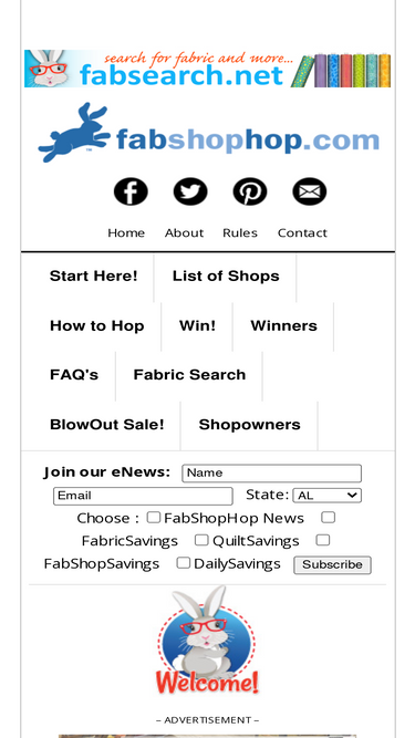 87%If you love to sew & quilt, you will love FabShop Hop, a monthly online shop hop. Register. Tour Shops. Find Bunny. Great Prizes.