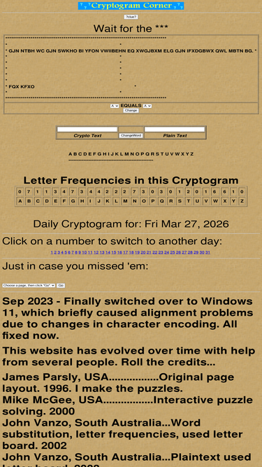 100%a daily cryptogram and links to related sites.