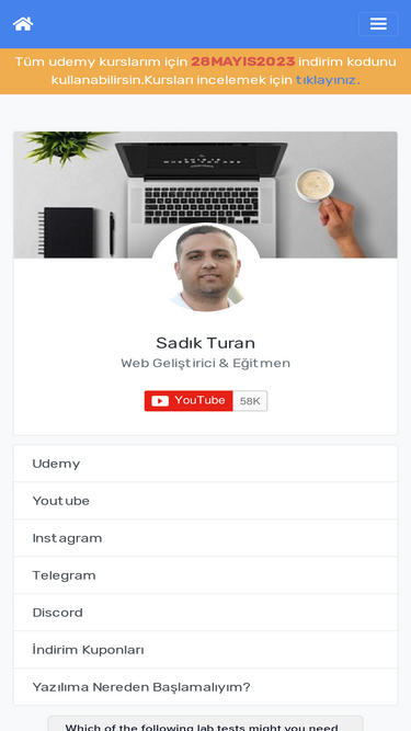 63%udemy eğitmenlerinden sadık turan'ın yazılım kursları ve indirimli kuponlar için tıklayınız.