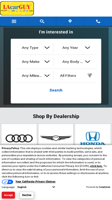 98%proudly serving la since 1974, we have 13 area dealerships to help you find the car or auto service you're looking for. find your next new or used car with lacarguy!