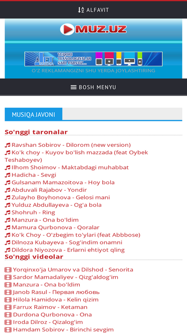 yangi va mashhur o'zbek mp3 taronalari