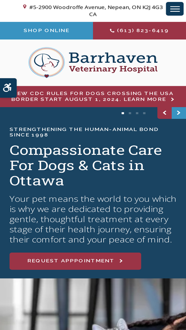 100%barrhaven veterinary hospital is a full-service veterinary hospital that offers comprehensive medical, surgical, and critical care services for pets.