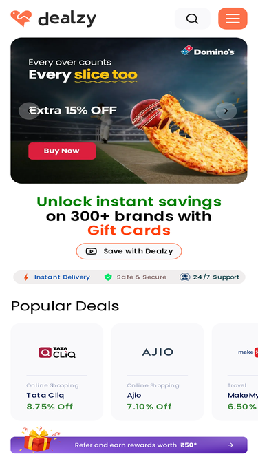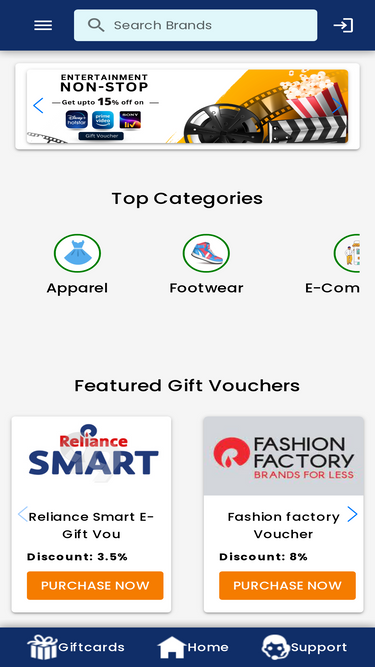 98%99Gift offers a wide variety of discounted gift cards for over 250 brands in India, including Apparels, eCommerce, Entertainment, Travels, Food, Entertainment, Grocery, Mobile, Footwear Etc. You can also find E-Gift cards for personal and commercial use