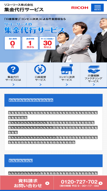 64%集金代行・収納代行サービスの会社なら【リコーリース株式会社】リコーリースの集金代行サービスでは、口座振替とコンビニ決済をご用意しています。全国の金融機関とのネットワークを生かしたサービスで、事業者向けの回収業務の改善を行ないます。初期導入費用・使わない月は基本料金も0円、請求件数1件からでのご利用可能です。