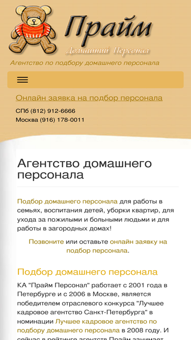93%подбор домашнего персонала для работы в семьях и загородных домах в качестве домашних помощников в санкт-петербурге (812)9126666 и москве (916)1780011.