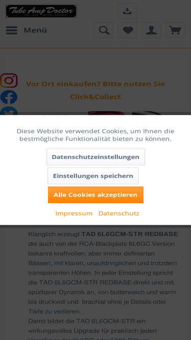 100%Die perfekte Vorstufen-Röhre! Die TAD 12AX7A-C / ECC83 TAD Premium Selected ist ein echtes Allroundtalent mit breitem Frequenzbereich und selektiert nach symmetrischen Systemen. Die Röhre produziert einen druckvollen, dichten Sound mit gutem Gain, tighten Bässen und seidigen, detaillierten Höhen! Empfohlen für alle Funktionen in Amps mit moderatem Gain und High-Gain Amps ab der 2. Stufe (V2). Als V1 empfehlen wir die RT010 7025 Highgrade oder RT095-HG 7025-WB Highgrade zu verwenden; insbesondere für High-Gain Amps oder Phono/Audio-Verstärker. Die RT001 kann auch anstelle von 7025, 12AX7WA, 12AX7WB, 12AX7LPS, 12AX7EH, ECC83 oder E83CC eingesetzt werden. Die TAD 12AX7A-C ist die erste Wahl bei: Blackstar®, Boogie®, Brunetti®, Diezel®, Engl®, Fender®, Hughes & Kettner®, Koch®, Laney®, Marshall®, REVV®, Soldano®, Two Rock®, VOX® und so vielen weiteren Qualitätsmarken.