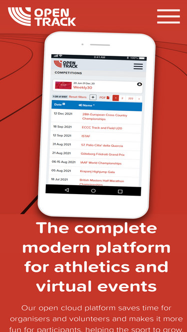 85%The complete competition management suite for athletics organisers. Our open cloud platform saves time for organisers and volunteers and makes it more fun for participants, helping the sport to grow.
