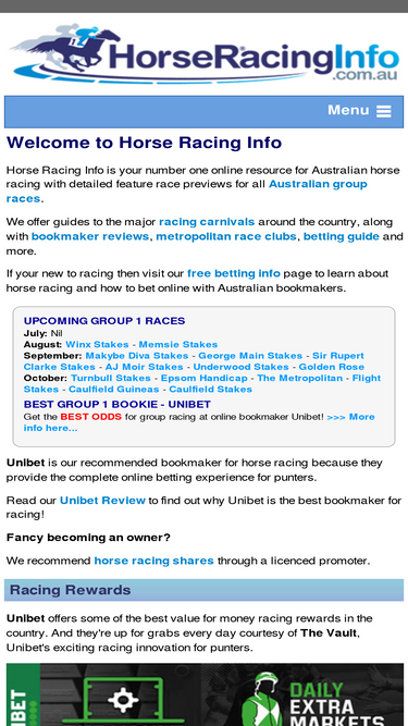 84%horse racing info provides australian feature race previews, bookmaker reviews, 2021 melbourne cup, racing carnivals, betting guides, tips, odds & more.
