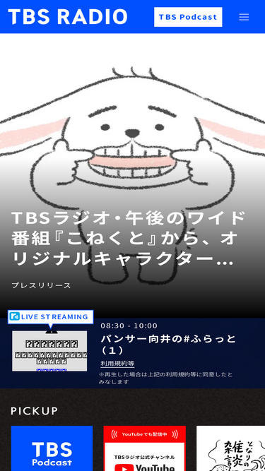 91%TBSラジオ公式サイト(周波数:FM90.5MHz/AM954kHz)。番組、記事、イベント/グッズ、キャンペーン等の最新情報が満載。月間3,500万回再生以上の「TBS Podcast」や累積視聴回数13億回以上のYouTubeコンテンツもお楽しみいただけます。