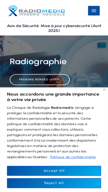 97%Introduction Radiomedic is a group of radiology clinics affiliated to the RAMQ and offers imagery services 7 days a week. Our team is made of specialized radiologists and technologists that also work in different public hospitals in Montreal, Laval, and the surrounding areas. http://vimeo.com/video/508986436 Our clinics are equipped with new top of the line equipment […]