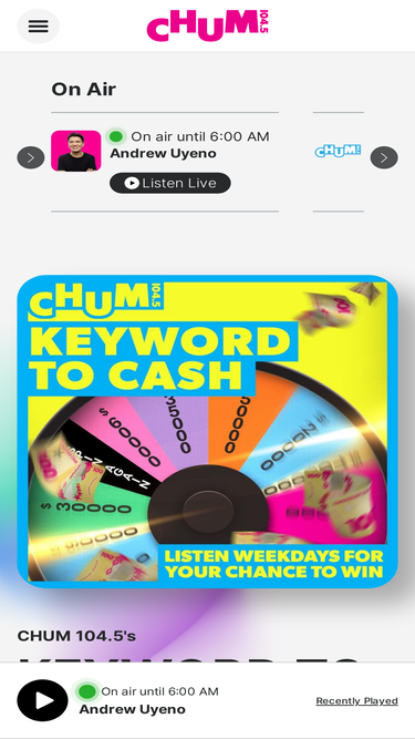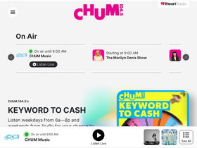 100%Listen to the best of Toronto's pop with CHUM 104.5 on iHeartRADIO. Tune in for Taylor Swift, Rihanna, Maroon 5, P!nk, non-stop hits and entertainment.