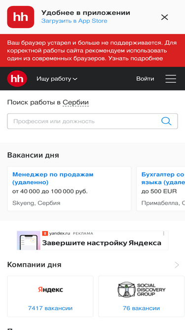 serbia.hh.ru ranks as the 4th most similar website to radnik.me and vakant.ru ranks fifth in January 2026.