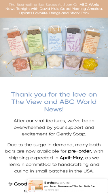 32%What is your mission? Gently Soap was founded in 2020 to offer products to a demographic that often struggles to find solutions within the commercial skincare industry: those with sensitive skin. Why is fragrance-free soap better for my sensitive skin? Fragrances are complex and can contain multiple synthetic and/or