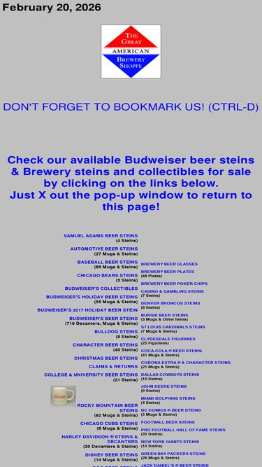 100%budweiser beer steins,gambling,casino,samuel adams octoberfest steins,2012 winter wonderland stein,budweiser beer mugs budweiser holiday steins,football,yuengling brewery,harley davidson stein,breweriana,disney,coca cola,hamms,strohs,winchester,pabst,coors,miller,leinenkugel steins